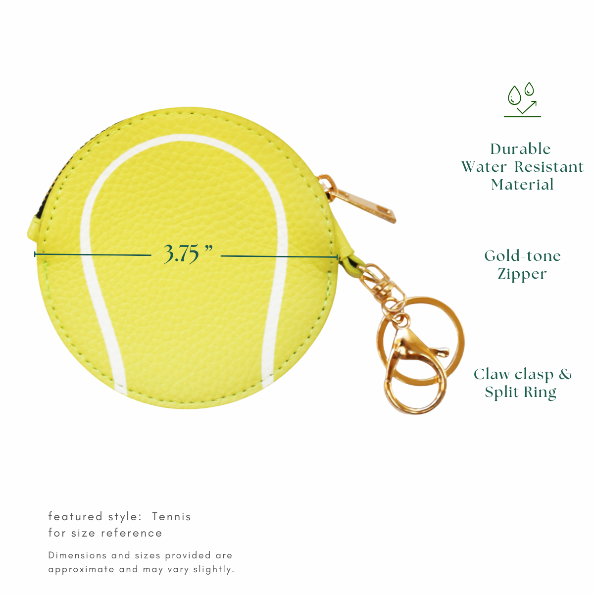 Tennis Ball Keychain Bag Charm Sports Coin Purse Pouch